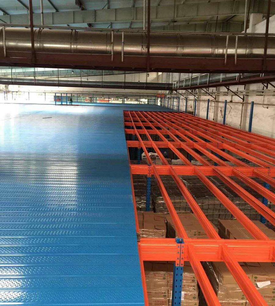 2.平台式货架面板有平板、花纹钢板、冲孔钢板等品种以适应防火、通风、光照等等不同使用要求。货物上下楼层可选择叉车、液压升降台、货梯等方式;货物同层运输通常使用小型手推车完成。